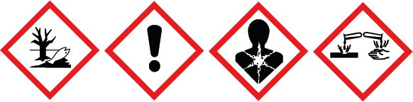 H410 Vysoce toxický pro vodní organismy, s dlouhodobými účinky.